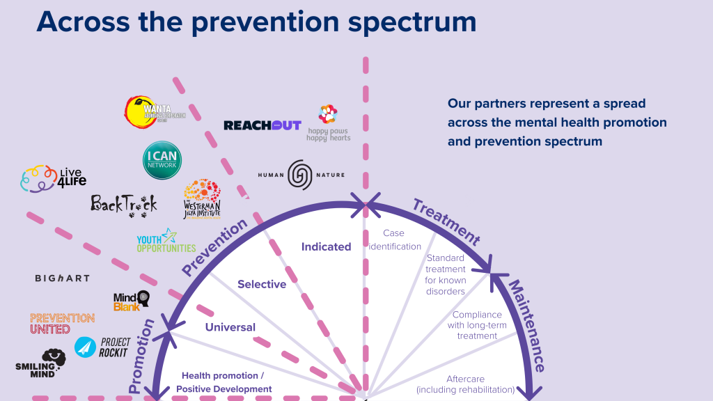 Future Generation Global’s social investment focus is promoting wellbeing and preventing mental ill-health in young Australians. We have 14 exceptional social impact partners working across the prevention spectrum. By allocating your portion of the donation, you can help support them to grow their impact with young people and develop their organisations.